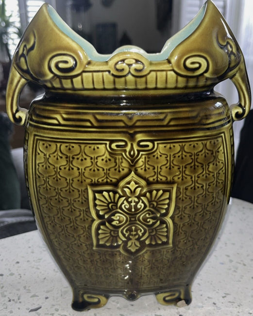 Objet No : 668 Vase Tokio / Vase NogayaExiste en : BronzeMarques : 1 A et 12Couleurs : vertPate : majoliqueDates : ± 1880