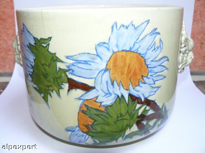 Objet No : 678 Cache-pot cylindrique à MascaronsExiste en : Lithochromie - Majolique - ChinaDescription : décor Japon