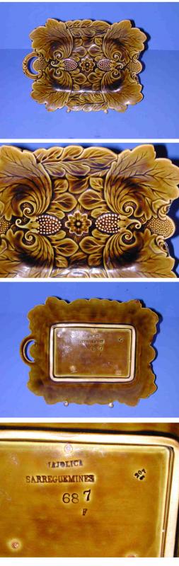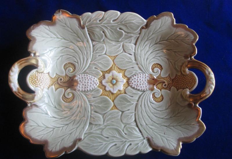 Objet No : 687 Plat fruits / Plateau à fruits à anses feuille d AcantheExiste en : Majolique - Bronze
