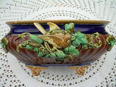 Objet No : 773 Jardinière Louis XVI à oiseauxExiste en : Majolique Marques : 1 BCouleurs : polychromePate : majolique